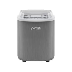Máquina de Gelo Praxis MGP12 com capacidade de produção de 12kg/dia, reservatório de 1,2 litros, ciclo rápido de 8 minutos, opções de tamanho de cubos, painel de controle intuitivo e design compacto.Capacidade de armazenamento de gelo