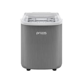 Máquina de gelo Praxis MGP12 com capacidade de produção de 12kg/dia, reservatório de 1,2L, potência de 112W, ciclo de produção de 9 minutos. Inclui cesto de gelo e pegador.Capacidade de produção de gelo