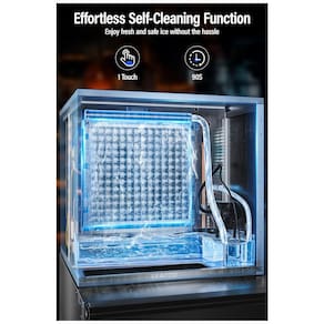 Eficiência Notável: Com a potência de um compressor superpotente, a máquina de fazer gelo Leacco produz 249.48 kg de gelo em 24 horas, garantindo um fornecimento constante enquanto otimiza o consumo de energia. Em apenas 5 minutos, ela pode gerar 182 cubos de gelo de alta qualidade, reconhecidos pela sua forma precisa, clareza e diluição lenta.