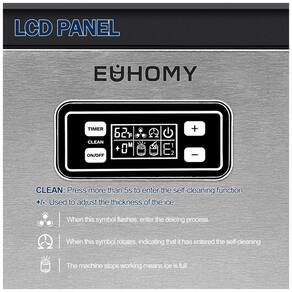 Cubos de gelo cristalinos A máquina de fazer gelo independente Euhomy é extremamente confiável e versátil, produzindo até 45kg de gelo por dia em um independente, 15kg compartimento de zenamento de capacidade. Máquina de gelo de 45kg possui prevenção automática de transbordamento, o sensor de gelo irá pará la quando o gelo estiver cheio. Painel de controle LCD intuitivo A máquina de gelo Euhomy é a melhor escolha para fazer gelo com painel de controle LCD intuitivo, permite uma operação fácil com funções de alimentação, atraso e limpeza. O símbolo do painel indicador intuitivo acende quando o compartimento está cheio ou quando é necessária manutenção. Abastecimento de água e drenagem A máquina de gelo independente está equipada com um conjunto completo de acessórios, incluindo pá de gelo, cano de abastecimento de água e cano de esgoto. Adequado para instalação independente ou embutida, ele funciona com uma corrente elétrica doméstica padrão. Requer abastecimento e drenagem de água drenagem por gravidade. Aço inoxidável e alta eficiência Fabricado em aço inoxidável, a máquina de fazer gelo da Euhomy é forte e durável. Gabinete atraente e durável de aço inoxidável com uma porta de fácil acesso que desliza para cima e para fora do caminho. O Ice Maker é equipado com certificado de energia, ajudando você a economizar eletricidade. Alta eficiência e baixo ruído proporcionam um ambiente confortável para desfrutar de cubos de gelo de alta qualidade. e de atenção A máquina de fazer gelo de grau funciona muito bem em residências, restaurantes, bares, hotéis, supers e muito mais não para uso ao ar livre. Combina alta produção e capacidade com um design compacto e independente. Aprovado para uso . Certifique se de manter a máquina de gelo na posição vertical por pelo menos 24 horas antes de usá la. Além disso, pressione o botão Limpeza do temporizador por mais de 5 segundos para entrar no Programa de limpeza para limpá lo duas vezes antes de fazer o primeiro lote de gelo. Incluído no Pacote 1 x máquina de gelo Euhomy 1 x colher de gelo 2 x tubo de abastecimento 1 x mangueira de drenagem 1 x conector de abastecimento de água 1 x manual do usuário. Especificações Cor Prata e Preto Tensão 110 120V 60Hz Capacidade de fabricação de gelo 45kg Gelo por 24 horas Capacidade de zenamento de gelo 15kg. Quantidade de cubos de gelo por ciclo 45 unidades Tempo de produção de gelo 11 20 minutos dimensão geral do lote 44 x 40 x 80cm Mantenha a máquina de gelo na posição vertical por pelo menos 24 horas antes de usá la pela primeira vez. Certifique se de que os circuitos elétricos de sua casa estejam aterrados. Limpe a máquina incluindo o tanque de água antes do primeiro uso. Requer abastecimento e drenagem de água drenagem por gravidade Marca: Não Informado