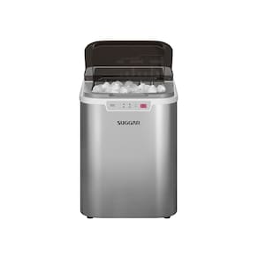 Produz gelo em 10 minutos, 9 cubos por vez, dreno para saída de água, painel luminoso que indica falta de água e reservatório de gelo cheio.Capacidade de armazenamento de gelo
