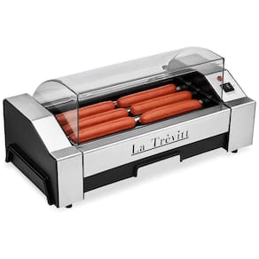 GRILL COMO UM PRO A QUALQUER LUGAR Projetado para fazer o cachorro quente perfeito sempre o 6 Hot Dog Roller da La Trevitt possui uma grade de aço inoxidável , 4 rolos antiaderentes com capacidade para 6 salsichas, fácil controle de temperatura e pingadeira removível que permite fazer cachorros quentes saborosos, kielbasa, salsichas, rolos de ovo e muito mais com uma máquina de cachorro quente em casa. E FÁCIL DE COZINHAR E MANTER QUENTE Grelhe quente do jeito que você gosta com controle de calor de dupla temperatura alta e baixa fácil neste rolo de cachorro quente elétrico grelhe com confiança com uma tampa protetora segura ao toque que facilita a abertura e o fechamento ao cozinhar em alta temperatura, e use a configuração de baixa temperatura para manter os cachorros quentes quentes o dia todo sem cozinhar demais ou queimar no rolo de salsicha. EXCELENTE ESTILO E EXCELENTE SABOR Este grelhador elétrico de cachorro quente adiciona um toque verdadeiramente delicioso à sua cozinha e evento com uma construção em aço inoxidável e design moderno e elegante rolos extra grossos giram continuamente para grelhar consistentemente, até mesmo cozinhar, e o cachorro quente ou lanche grelhado perfeito em sua mini máquina de cachorro quente. FÁCIL DE LIMPAR Com roletes inox antiaderentes e bandeja coletora removível, o grelhador de cachorro quente mantém sua cozinha limpa e com o mínimo de lavagens limpe ou coloque na máquina de lavar louça depois de grelhar cachorros quentes e muito mais para um final fácil para uma refeição deliciosa. SIMPLES DE USAR, PROJETADO PARA DURAR Esta grelha portátil para cachorro quente é a maneira mais fácil e rápida de grelhar para festas, churrascos, balcões de fast food e deliciosos jantares familiares feito de aço de alta qualidade e os mais altos padrões de segurança, incluindo uma base antiderrapante resistente e tampa protetora móvel, é e fácil de usar para toda a família