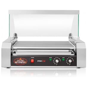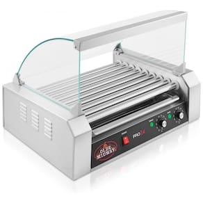 Nível : construído em aço inoxidável de alta qualidade, este grelhador de cachorro quente de 1200 watts de nível possui 9 rolos antiaderentes que podem cozinhar até 24 cachorros quentes por vez. Esses rolos lentos giram 360 graus, cozinhando todos os itens uniformemente. Esta máquina é adequada para grelhar todas as variedades de cachorros quentes, salsichas, taquitos e muito mais. Controles de temperatura dupla: O design fácil de usar possui o botão liga, desliga e controles de temperatura separados para os rolos dianteiro e traseiro convenientemente localizados no painel frontal. Os controles de temperatura dupla permitem o cozimento contínuo nos rolos traseiros, enquanto os rolos frontais mantêm os itens cozidos quentes e prontos para servir. Cobertura de vidro curvo: A cobertura de nível é construída em vidro temperado. Este escudo protetor de proteção contra espirros de vidro mantém sua comida e a superfície de cozimento livres de poeira, partículas transportadas pelo ar e insetos. Fácil de limpar com um pano umedecido em água. Design limpo e conveniente: cozinhe e grelhe em quase qualquer lugar e evite a bagunça e o incômodo de uma churrasqueira a gás convencional de tamanho normal com este design poderoso e compacto. Inclui uma bandeja coletora removível de aço inoxidável para facilitar a limpeza. Recursos de segurança integrados: esses rolos de cachorro quente são equipados com um fusível embutido e um cabo de alimentação de 120 volts padrão dos EUA aterrado para segurança. Os pés de borracha antiderrapantes fornecem uma base segura para cozinhar e servir.