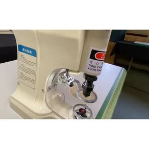 Máquina de botão de pressão BRACOB BC 818 com motor direct drive no cabeçote, painel de controle digital, contador de operação, luz de posição infravermelha (laser), luminária LED e mesa com rodinhas. Possui pedal conectado a um acionador que regula a velocidade do motor, funcionando de forma silenciosa e com economia de energia. Requer lubrificação manual antes do uso.Funções