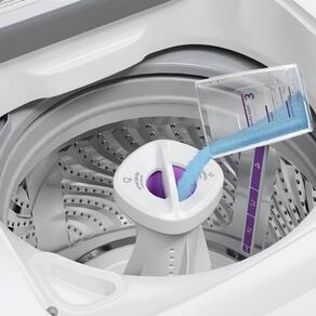 Dual Dispenser: Sabão e amaciante entram em contato com as roupas no momento certo, evitando manchas.