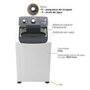 Capacidade de lavagem: 13Kg