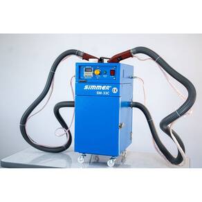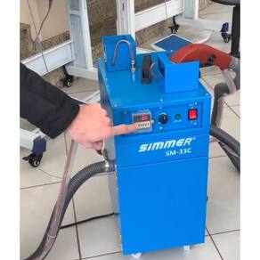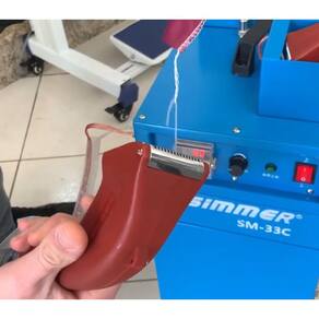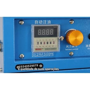 Máquina eletrônica para limpeza de fios com duas cabeças de limpeza independentes. Possui sistema acionado por dois motores servo, motores individuais com carvão, estrutura prática e funcional montada sobre estante com rodinhas, e sistema eletrônico avançado. Compatível com voltagem 220V.Alça retrátil
