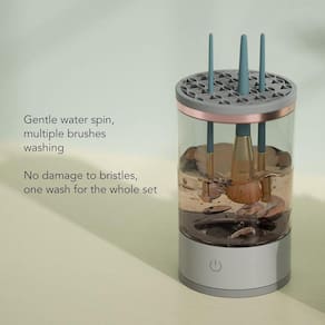2. MULTI ESCOVA: Este limpador automático de pincéis de maquiagem pode acomodar vários pincéis ao mesmo tempo, tornando-o uma opção que economiza tempo para entusiastas de maquiagem ocupados.
