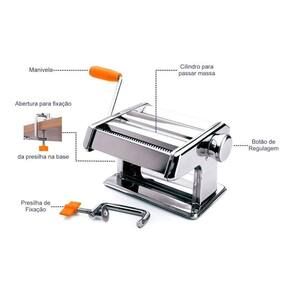 Maquina de Macarrão com Cilindro Aço Inox para Massa Caseira DelicimassaA Maquina de Macarrão Delicimassa é o utensílio perfeito para o preparo de deliciosas refeições. Com ela você pode preparar 3 tipos diferentes de massa: talharim, espaguete e massa laminada para lasanha.Possui manivela removível e regulador de espessura da massa, possibilitando até 8 espessuras diferentes.Segura e resistente, possui grampo que fixa a máquina na bancada garantindo maior segurança e facilidade no trabalho, pois evita que a máquina se movimente enquanto é operada e é feita em aço inox, que proporciona maior durabilidade e vida útil ao produto.Além disso, a Máquina de Macarrão Delicimassa é Fácil de utilizar e limpar, leve, podendo ser transportada para qualquer local.- Possui 3 regulagens: talharim, espaguete e massa laminada para lasanha- Material: aço- Botão de regulagem de espessura da massa até 8 espessuras diferentes - Espessuras em Polegadas/Milímetros: 1 - 0,125 - 3,175 mm 2 - 0,95 - 2,413 mm 3 - 0,85 - 2,159 mm 4 - 0,75 - 1,905 mm 5 - 0,65 - 1,651 mm 6 - 0,55 - 1,397 mm 7 - 0,45 - 1,143 mm 8 - 0,35 - 0,889 mm- Diversidade de lâminas para variados tipos de massas- Manivela removível e desenvolvida para gerar menor esforço- Grampo fixador para melhor manuseioDimensões do produto: 20 x 19 x 13 cm C x L x A Comprimento dos rolos: 14 cmPeso: 2,5 kgConteúdo da Embalagem:1 Máquina de macarrão1 Manivela1 Grampo de fixação1 Manual de instruçõesATENÇÃO: Produto destinado exclusivamente para uso e consumo Não vendemos para revendedores