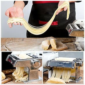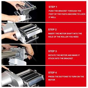 MATERIAL Todo o corpo da máquina para fazer macarrão elétrico é revestido de aço inoxidável, os rolos e as lâminas são de alumínio anodizado. FACILMENTE AJUSTÁVEL Oferecemos mostrador de 7 ou 9 posições que regula a espessura da massa de 0,5mm a 3mm, inclui acessórios para fazer a massa com larguras de 1,5mm e 6,6mm. O motor pode ser retirado após o uso. FÁCIL DE USAR Possui máquina de macarrão integral clássica com motor de 110 V com 2 velocidades para operar a máquina automaticamente ou você pode usar uma manivela para fazer macarrão. FÁCIL DE LIMPAR Você pode limpar com uma escova ou pano macio e seco. NOTA Nunca lave a máquina com água ou na máquina de lavar louça Um motor de 110 V com 2 velocidades para operar a máquina automaticamente e permitir que você crie massas autênticas e deliciosas em sua própria casa nunca foi tão fácil. ESPECIFICAÇÃO Frequência 50 Hz Potência 70 W MOTOR E INSTRUÇÕES DE INSTALAÇÃO DO SUPORTE 1. Empurre o suporte pela base da máquina de macarrão para travá lo bem. 2. Insira o motor no orifício do cilindro necessário. 3. Gire o motor e prenda o no suporte. 4. Pressione os botões para ligar o motor. MANUTENÇÃO DA MÁQUINA 1. Desligue antes de limpar o motor e antes de qualquer operação de manutenção 2.Sempre remova o motor antes de limpar a máquina e use a alça para girar os rolos. 3.Nunca lave a máquina com água ou na máquina de lavar louça 4. Use um pano macio para limpar o motor após o uso. 5. Quaisquer reparos que precisem ser feitos nas partes elétricas devem ser realizados por pessoal treinado Marca: Não Informado