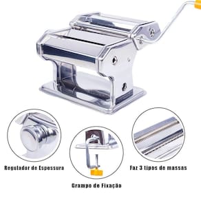A Máquina de Macarrão o utensílio perfeito para o preparo de deliciosas refeições. Segura e resistente, a Máquina De Macarrão possui um grampo que fixa na bancada garantindo maior segurança e facilidade no trabalho, pois evita que a máquina se movimente enquanto operada.