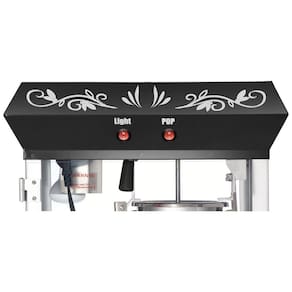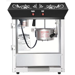 Máquina de pipoca Great Northern Foundation preta, estilo antigo de cinema, capacidade de 170g, produz 5,7 litros de pipoca, plataforma aquecida e gaveta para grãos não estourados.Luz indicadora de funcionamento
