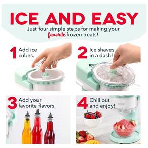 MAIS SAUDÁVEL Faça raspadinhas caseiras, cones de neve, coquetéis congelados e muito mais, direto de sua cozinha Você controla os ingredientes orgânicos, sem açúcar, suco totalmente natural, tornando os melhores para você e sua família RÁPIDO FÁCIL Basta conectar , adicione cubos de gelo regulares, faça a barba, adicione seu xarope de cone de neve favorito ou suco e cubra com frutas frescas ou enfeite Ótimo para coquetéis congelados, coquetéis sem álcool e grandes reuniões de festa tão fácil que seus filhos podem usar COMPACTO PESO LEVE pesando menos de 450gr, este é um item OBRIGATÓRIO para o primeiro apartamento, cozinha menor, vida no dormitório da faculdade ou viagens de trailer , trailer PRESENTE PERFEITO o presente de casamento perfeito, presente para casa ou presente para crianças Seu tamanho pequeno ocupa pouco espaço no balcão, e seu design elegante e opções de cores modernas combinam com qualquer decoração de cozinha adicione ao seu registro agora INCLUI O Dash Shaved Ice Maker de 85 watts , inclui livro de receitas e acesso ao banco de dados de receitas todas as peças não elétricas são facilmente limpas. Cor Verde Água Guloseimas refrescantes, doces e deliciosas em minutos. Basta adicionar cubos de gelo e o Dash Shaved Ice Maker faz o resto. Em seguida, cubra com seu xarope favorito. Um cortador de gelo elétrico funciona automaticamente e possui uma lâmina de aço inoxidável com peças próprias para lava louças para fácil limpeza. Saboreie seu gelo raspado com suco de frutas, xarope de bordo e outros ingredientes orgânicos para uma guloseima sem gordura e de baixa caloria que satisfaz seus desejos de guloseimas congeladas Marca: Não Informado