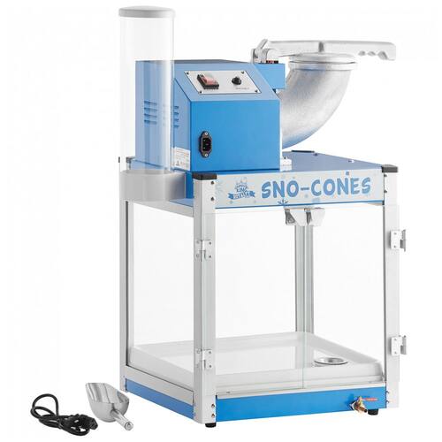 A Máquina de Raspadinha Carnival King Royalty Series SCM350R é uma adição incrível para barracas de alimentação, lanchonetes, sorveterias ou carrinhos de feira. Com um motor potente de 0,338 cv, ela processa até 227 kg de gelo por hora. Possui uma porta de vidro temperado de alta visibilidade, painéis de acrílico e estrutura de alumínio resistente. Seu design robusto inclui chifre de alumínio fundido, cabeça de corte e empurrador com cabo ergonômico. Com capacidade para até 40 lb (aproximadamente 18 kg) de gelo processado, você terá flexibilidade para armazenar gelo extra e atender os pedidos rapidamente nos dias mais movimentados. As portas de vidro temperado, painéis de acrílico e dispensador de copos removível ajudam na exposição do gelo recém-processado. As lâminas de aço inoxidável e o botão de reinício de segurança garantem durabilidade e proteção aos operadores. Além disso, a inclinação inferior, válvula de drenagem frontal e mangueira de drenagem facilitam a limpeza. Com esta máquina, você poderá servir deliciosas raspadinhas o verão todo!