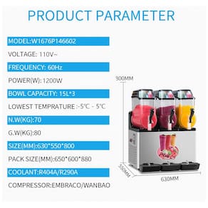 Com a nossa máquina de slushie comercial, você pode não apenas fazer deliciosos smoothies, mas também bebidas geladas! Esta máquina comercial de smoothie é adequada para cafés, bares, restaurantes, parques de diversões, entre outros. Feita com aço inoxidável de grau alimentício 304 e material PC de grau alimentício espessado, seguro e confiável. Com capacidade super de 45L, pode produzir continuamente até 70 copos de smoothies! Fácil de usar, com controle de tela LCD por microcomputador, controle de temperatura inteligente e exibição em tempo real da temperatura do cilindro de material. Limpeza simples e rápida com um clique, mantendo tudo limpo e sem odores. Compressor de marca e tecnologia de limpeza fácil, tornando-a ideal para cafeterias, bares e restaurantes. Aproveite para expandir seu negócio com essa máquina eficiente e prática!