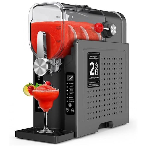 Com o modo de Criação de Bebidas 6 em 1, esta máquina inteligente simplifica o processo para resultados de nível barista na sua cozinha. Crie raspadinhas, smoothies, frappés, coquetéis congelados, milkshakes e muito mais com apenas um toque. Desfrute de bebidas mais suaves, mais consistentes e mais espessas sem a necessidade de gelo ou mistura extra. O controle de resfriamento de 8 níveis e as lâminas giratórias 360° garantem uma textura de gelo perfeita, infusão de sabor mais profunda e uma delícia congelada em cada gole. Compacta e versátil, esta máquina de frozen com capacidade de 1,6L se encaixa perfeitamente em balcões modernos, produzindo até 12 copos por vez. Além de ser ideal para encontros familiares, festas informais, pausas no escritório, mimos em dormitórios e rituais diários de refrescância, também é um presente perfeito para o verão. Limpeza fácil com um toque, peças removíveis que podem ir à lava-louças e escova de limpeza garantem uma limpeza sem complicações. Desfrute de até 12 horas de operação contínua à prova de vazamentos. Adicione ingredientes a qualquer momento durante o ciclo com confiança, graças ao design à prova de vazamentos que garante uma mistura sem bagunças, manuseio mais seguro e menos tempo de limpeza. Atenção: certifique-se de que o teor de açúcar seja acima de 4 e o teor alcoólico em bebidas alcoólicas esteja entre 2,8 e 16. Antes de despejar a mistura no recipiente, mexa bem. Não adicione cubos de gelo, ingredientes sólidos ou líquidos quentes.