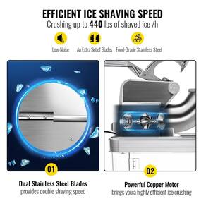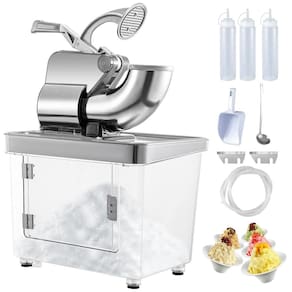 Qualidade Premium com certificação ETL Diferente de outros trituradores de gelo, as máquinas de cone de neve da VEVOR têm certificação ETL e são aprovadas para uso . Construída com funil de aço inoxidável de alta qualidade na abertura, lâminas de aço inoxidável de qualidade alimentar, recipiente de PC moldado por injeção de uma peça e pés antiderrapantes, esta máquina de barbear gelo possui características inquebráveis, resistentes e estáveis para uso de longo prazo. Lâminas duplas com mais eficiência As lâminas duplas de aço inoxidável para serviços pesados fornecem eficiência dupla em comparação com as máquinas de lâmina única. Além disso, um par extra de lâminas e uma pá de gelo estão disponíveis gratuitamente. O motor de cobre de 300 W de alta potência garante uma alta velocidade de rotação de 1450 r , min e incrível capacidade de trituração de cerca de 179 kg por hora e fornece uma grande quantidade de gelo para seu uso diário e . Caixa de grande capacidade Esta máquina criadora de bolas de neve adota uma caixa de zenamento de PC moldada por injeção de uma peça, que pode conter cerca de 34L 9 galões de gelo raspado. O material espessado manterá o gelo da neve congelado por um longo tempo. Além disso, o triturador de gelo é equipado com uma mangueira de drenagem, que drena o excesso de água e evita que a água vaze nas superfícies. Design fácil e a máquina de gelo raspado é equipada com uma alça ergonômica para operação que economiza trabalho, apresentando um interruptor de limite para segurança. O botão liga , desliga é à prova dágua, o que é o suficiente para operar mesmo que suas mãos fiquem molhadas. Este barbeador é adequado para fazer cones de neve, raspadinhas, milkshakes, iogurtes congelados e outras deliciosas bebidas congeladas. Perfeito para família, escola, igreja, restaurantes, bares, etc Marca: Não Informado