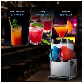 Refrigeração Rápida e Mistura: O sistema de refrigeração de dupla face possui excelentes funções de refrigeração rápida e produção altamente eficiente de raspadinhas, especialmente projetado para o negócio de bebidas congeladas no verão. O compressor potente e duradouro com fios de cobre ajuda a refrigerar e formar rapidamente, sendo mais eficiente em termos de energia, com menos decibéis e ruído. A mistura fina e homogênea do smoothie proporciona um sabor suave e agradável no verão.
