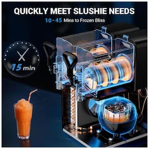Com a Máquina de Bebidas Geladas TUATNUT, você pode preparar slushies, margaritas e outras bebidas geladas rapidamente e de forma eficiente, sem precisar de gelo. Equipada com compressor de cobre puro e tecnologia avançada de silenciamento, congela em até 45 minutos a 40dB, sem perturbar o ambiente. Escolha entre os modos Slushy, Margarita e Cold Drink, ajustando a textura conforme desejado. Feita com aço inoxidável comercial e tanques de PC de qualidade alimentar, é durável e higiênica. Possui capacidade para dois sabores diferentes, iluminação LED inteligente e design à prova de vazamentos. Ideal para uso comercial ou doméstico.