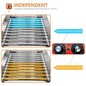A característica fundamental da nossa grelha para cachorro quente são seus botões duplos de controle de temperatura que podem ser ajustados separadamente até 572F, permitindo o cozimento contínuo nos rolos dianteiros enquanto mantém o calor dos itens cozidos nos rolos traseiros, prontos para consumo a qualquer momento. A tampa totalmente fechada e transparente mantém a poeira afastada, garantindo um ambiente de cozimento higiênico.
