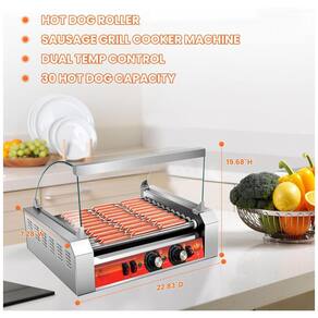 Nossa máquina de cachorro quente para grelhar é perfeita para uso comercial em balcões de fast food, lanchonetes, restaurantes, lojas de conveniência, padarias, festas e reuniões familiares. Com 11 rolos e um poderoso elemento de aquecimento de 1670 W, ela é capaz de grelhar até 30 cachorros quentes simultaneamente. Alimentos pré cozidos ou descongelados podem ser inseridos para aquecimento, enquanto o tambor da máquina gira lentamente 360 graus para garantir o aquecimento uniforme de cada cachorro quente.