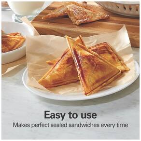 Prepara 4 sanduíches quentes e crocantes em 5 minutos. Superfície antiaderente livre de PFAS. Design compacto para fácil armazenamento.Funciona como grill