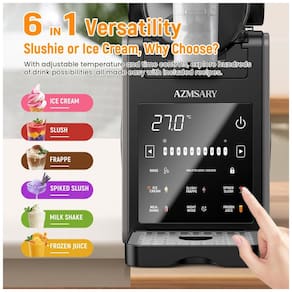 A Máquina de Slushie e Sorvete Azmsary FS306-US oferece tecnologia de congelamento rápido avançada para preparar bebidas geladas e sorvetes cremosos sem necessidade de gelo. Com capacidade de 2,5 litros, selecione um dos 6 programas pré-definidos — sorvete, frappe, slush com álcool, milkshake, suco congelado ou slush — otimizados para textura, sabor e temperatura ideais. Basta adicionar ingredientes como vinho, café, suco ou leite, escolher o modo via painel touch e aguardar 15 a 45 minutos para resultados consistentes.