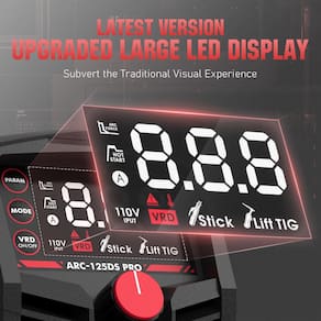 Características: ARC-125DS é ideal para soldadores de arco DC 6010,7018,6011. Arranque de arco potente, Design de arranque a quente e força de arco - Fácil arranque de arco, torna o seu trabalho de soldagem feliz e conveniente. Tecnologia de interruptor suave IGBT, excelente estabilidade de arco, 20-120 amperes peça de trabalho fina de solda muito adequada. A leveza e a força de seus componentes tornam esta uma ferramenta de trabalho confiável para profissionais ou uso pessoal. Compensação automática para flutuação de tensão, proteção contra sobrecorrente, proteção contra sobrecarga. Controle automático de temperatura, dormência do ventilador, controle de amperagem de campanário, todos os geradores são amigáveis. Isso é otimizado para proporcionar uma solda impecável, tornando a limpeza de respingos e pós-soldagem quase inexistentes. Entrada de tensão dupla 115V/230V, todas as máquinas testadas nos EUA. Personagem: Modelo: ARC-125DS Tensão de entrada nominal: CA 110V e AC 220V Frequência: 50/60Hz Corrente de entrada: 23A a 110V e 33A a 220V Corrente de saída: 20-125A Ciclo de trabalho nominal: 60% em 110V/125A e 60% em 220V/125A Eficiência: 85% Fator de potência: 0,93 Grau de isolamento: F Grau de proteção: IP21S Dimensão: 14,5 x 10 x 6,3 Peso líquido: 5 kg. Conteúdo da embalagem: Máquina de solda ARC-125DS Cabo de suporte de eletrodo de 3 metros. Cabo de fixação de trabalho de 3 metros. Adaptador de energia de 110 V e 220 V. Escova (para respingos de soldagem limpos) Manual do proprietário. - Adequado para iniciantes: peça de trabalho fina de solda adequada de 20-125 amperes e projetos fáceis de bricolage. Ideal para hastes de solda E6011, E6013, E6010, E7018 abaixo de 1/8 de polegada. Em comparação com outros monitores tradicionais, nosso visor LED inteligente pode ajudá-lo a ver os dados com mais clareza, como a corrente, dimensão do eletrodo, modo de função e modo de soldagem. - Segurança: compensação automática para flutuação de tensão, proteção contra sobrecorrente, proteção contra sobrecarga, controle de temperatura. - Início quente ajustável: aumenta a corrente durante a partida para proporcionar partidas de arco fáceis, rápidas e confiáveis. - Força de arco ajustável: minimiza a aderência do eletrodo na poça sem comprometer a estabilidade do arco ou aumentar respingos. - Portátil: design compacto (23,5 x 9,4 x 13 cm), pesando pouco menos de 2 kg. (2 kg), para que você possa trabalhar de forma mais inteligente e não mais difícil, levando o soldador para o trabalho, mais fácil de transportar e armazenar.