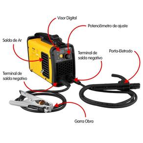 - Diâmetro máximo do eletrodo recomendado:127 V~ até 2,5 mm / 220 V~ até 3,25 mm
