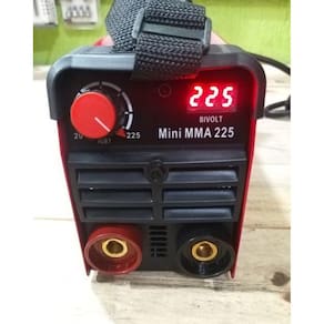 Máquina de Solda Inversora de aparência mini com tecnologia IGBT e visor digital. Especificações Técnicas: Tensão de entrada nominal: 127V/220V Bivolt ; Frequência: 60Hz; Ciclo de trabalho 60%: 115A; Ciclo de trabalho 100%: 89A; Corrente de entrada: 30,5A; Tomada 3 Pinos: 20A Conector Universal Positivo e Negativo : 9mm Nominal de saída: 24V; Mostrador Digital /Potenciômetro Analógico: 20-225A; Potencia Máxima: 4.1KW; Tensão sem carga: 80V; Eficiência: 85%; Ciclo de carga: 60%; Solda eletrodos: até 3,25mm 1/8 ; Classe de proteção: IP21S; Modo de Resfriamento: Refrigeração de ar forçada. Dimensões: Dimensões da caixa: 28 x 18.5 x 16cm; Dimensões da Inversora : 25 x 10 x 12,5cm; Peso bruto da caixa : 2,70kg Peso líquido da Inversora sem cabos : 2.00kg; Comprimento Total do Cabo com a Garra Negativa: 130cm; Comprimento Total do Cabo com o Porta Eletrodo: 160cm; Conteúdo da embalagem: 1 Máquina de Solda Inversora; 1 Cabo Positivo Porta eletrodo ; 1 Garra Negativa Grampo Terra ; 1 Fita para Transporte. : 1 ano Marca: Não Informado