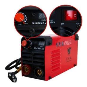 Máquina de Solda Inversora de aparência mini com tecnologia IGBT e visor digital.