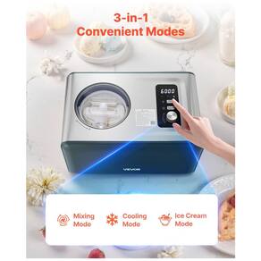 A Máquina de Sorvete Automática da VEVOR oferece três modos versáteis: sorvete, resfriamento e mistura. Com um simples toque, esta máquina de sorvete atende a todas as necessidades de sobremesa da sua família. Com capacidade de 1,5 litros e um motor potente de 150W, esta máquina de sorvete com compressor produz sorvete o suficiente para até 13 pessoas, garantindo desempenho rápido e eficiente. O compressor integrado faz sorvete em apenas 50-60 minutos, sem a necessidade de pré-congelar a tigela. Possui desligamento automático do motor para segurança, uma ventoinha de resfriamento integrada para operação suave e peças removíveis para limpeza fácil.