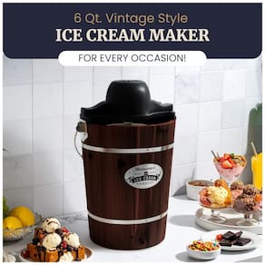 Máquina de Sorvete Elétrica Vintage Elite Gourmet EIM949 Old Fashioned de 5,67 Litros com Balde de Madeira de Nogueira, Funciona com Gelo - 110v