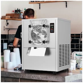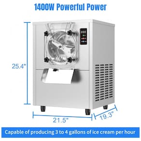 Máquina de sorvete hard serve comercial com cilindro de 4,5L, alta produção de até 15 litros/hora, potência de 1400W e painel digital LED. Construída em aço inoxidável 304 grau alimentício, com compressor de cobre de 1290W para resfriamento rápido e eficiente. Inclui base antiderrapante, defletores plásticos e sistema de exaustão ampliado para maior durabilidade e desempenho.Bowl de congelamento