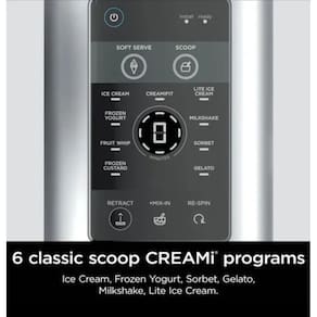 Máquina de sorvete 13 em 1 com dispenser italiano, 2 potes de 480ml com sistema de nozzle, haste de dispenser com três velocidades, tigela externa, paddde creamerizer, bandeja coletora e livro de receitas. Motor de 800W. Componentes removíveis (exceto base) são BPA free e podem ir na lava-louças.Bowl de congelamento