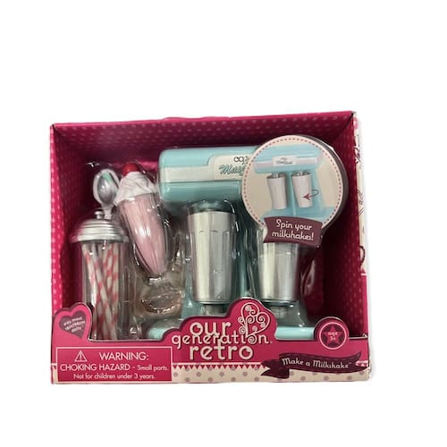 Misture a guloseima mais doce com o conjunto Our Generation Make A Milkshake para bonecas de 18 polegadas! Peça seus sabores favoritos de sorvete no delicioso menu e comece a misturar com a máquina de estilo retrô. Prenda facilmente as xícaras de milk-shake sob os bicos de mistura e gire as xícaras para criar uma bebida saborosa para seus melhores amigos. Um morango, por favor! Adicione o chantilly e coloque um canudo da jarra, depois complete sua deliciosa confecção com uma cereja por cima! Os doces ficam ainda mais deliciosos quando feitos com charme vintage. (Bonecas vendidas separadamente)