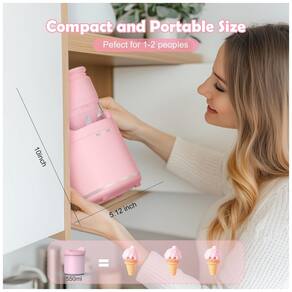 O conjunto inclui tigela de congelamento, recipiente externo da tigela, pá de mistura e tampa transparente, facilitando o acompanhamento visual do preparo. O equipamento possui capacidade nominal de 550 ml, corpo em cor rosa e dimensões aproximadas de 11,4 cm (comprimento) x 13 cm (largura) x 25,4 cm (altura), com peso em torno de 2,1 kg. A limpeza é feita por desmontagem simples dos componentes e lavagem manual, seguindo as instruções do fabricante para preservar vedação, acabamento e desempenho do motor.