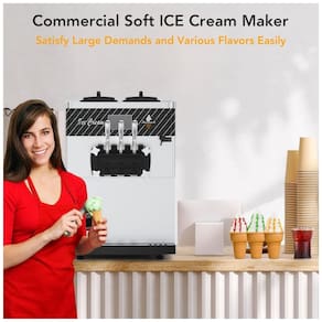 Máquina de sorvete soft comercial Festisoul, alta produção (20-28 L/h), 3 sabores, tanque de 6L, compressor 2450W, painel digital LCD com timer, função autolimpeza, design de bancada.Bowl de congelamento