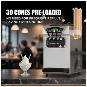 Destaca-se pelo sistema de pré-resfriamento e manutenção da consistência ideal do sorvete em temperatura controlada entre 2°C e 8°C, evitando derretimento e perda de textura durante períodos de espera. Conta com alarme de insuflação (puffing alarm) para garantir a qualidade do produto, além de painel touchscreen com tela LCD intuitiva que permite controle de tempo, temperatura, dureza e monitoramento da produção. A função de autolimpeza facilita a manutenção diária. Seu design compacto de aço inoxidável com baixo nível de ruído (45 dB) é ideal para pontos comerciais como cafés, lanchonetes e sorveterias.