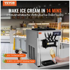 Máquina de sorvete soft comercial com alta produtividade de 18 a 28 litros por hora. Possui compressor robusto, dois recipientes em aço inoxidável SUS304 de 5,5 litros cada, com congelamento inicial em 14 minutos e lotes subsequentes em até 4 minutos. Painel de controle LED com resfriamento automático, limpeza por um toque e configurações de timer. Estrutura em aço inoxidável SUS401. Ideal para sorveterias, cafés, bares e quiosques, com três opções de sabores simultâneas.Bowl de congelamento