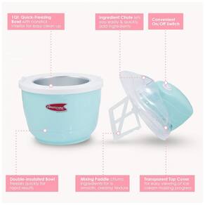 Sorveteira elétrica Elite Gourmet EIM 520, capacidade de 1 litro, ideal para preparar sorvetes, iogurtes e gelatos caseiros. Fácil de usar, com tigela de congelamento rápido e rampa para adicionar ingredientes.Bowl de congelamento