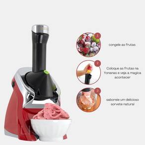 O que tem a sorveteria Yonanas Tem vida saudável. Algum dia na vida você já imaginou que uma simples banana até mesmo aquelas esquecidas na fruteira , poderia te ajudar a ter uma vida mais saudável Foi por isso que a Yonanas foi criada, para aumentar ainda mais sua ingestão de vitaminas e te ajudar a encontrar uma vida mais saudável e equilibrada. A Sorveteria Yonanas transforma aquelas bananas maduras demais em incríveis sorvetes e smoothies. É simplesmente o melhor dos mundos: um alimento saudável, que já vem embalado da natureza, além de ser uma fruta que cresce durante o ano todo. Coloque suas frutas preferidas para fazer sorvetes super saudáveis e funcionais. Se quiser também pode por um pouco de chocolate amargo, que contém alto teor de antioxidantes, a gente não conta pra ninguém. As calorias até podem aumentar um pouquinho, mas a base de banana deixa tudo muuuuuito mais gostoso, né Sorveteria Yonanas são uma grande fonte natural de vitaminas Acompanha livro de receitas. Fácil de usar, fácil de limpar.