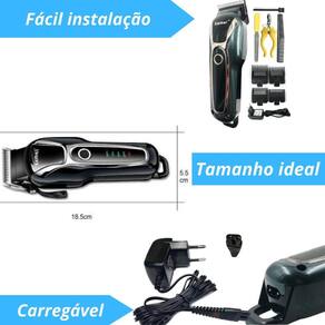 Sem fio Tensão bivolt Potência de 5w Lâminas de aço inoxidável ajustáveis 0,5 mm a 1,0 mm Motor de alta velocidade Carregamento rápido 3 horas Autonomia de até 120 minutos 4 pentes guia 3mm, 6mm, 10mm, 13mm