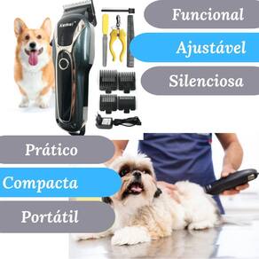 A máquina de tosa pet bivolt profissional kemei km-1991 é ideal para tosar animais de pequeno e médio porte de forma eficaz e segura. Equipada com lâmina de aço inoxidável, possui tela lcd digital para monitorar a bateria e opera silenciosamente, garantindo conforto para o pet.