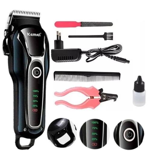 A máquina de tosa pet bivolt profissional kemei km-1991 é ideal para tosar animais de pequeno e médio porte de forma eficaz e segura. Equipada com lâmina de aço inoxidável, possui tela lcd digital para monitorar a bateria e opera silenciosamente, garantindo conforto para o pet.