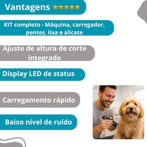 Máquina de tosa kemei km-1991 recarregável Descrição do anúncio: A máquina de tosa pet bivolt kemei km-1991 é ideal para tosar animais de pequeno e médio porte de forma eficaz e segura. Equipada com lâmina de aço inoxidável, possui tela lcd digital para monitorar a bateria e opera silenciosamente, garantindo conforto para o pet. Conteúdo da embalagem: Máquina km-1991 Fonte bivolt 4 pentes guia 3mm, 6mm, 10mm, 13mm Bisnaga com silicone Pente Cortador de unhas Lixa Manual do usuário Características: Sem fio Tensão bivolt Potência de 5w Lâminas de aço inoxidável ajustáveis 0,5 mm a 1,0 mm Motor de alta velocidade Carregamento rápido 3 horas Autonomia de até 120 minutos 4 pentes guia 3mm, 6mm, 10mm, 13mm Especificações: Material: abs de alta qualidade Tela lcd Sistema de corte r-shape Tempo de carregamento: 3 horas Tempo de uso: até 120 minutos Tensão de entrada: 5v Corrente: 1000ma Principais perguntas sobre o produto e respostas: 1 é indicada para pets de médio e grande porte Sim, eficaz para animais de qualquer tamanho. 2 o produto é resistente Sim, feito com materiais de alta qualidade e durabilidade. 3 tempo de carregamento da bateria Aproximadamente 3 horas. Marca: Não Informado Ean: 7905276309358