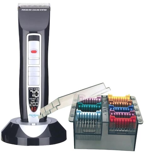 5000 a 7000 rpm. O carregador que acompanha a máquina de tosa pro6 propetz é uma base de apoio com 2 dois sistemas de carregador. O modo normal leva até 3 três horas para obter a carga completa, e o modo reparo é indicado para ser utilizado no fim do dia e assim, preservar a vida útil da bateria. A bateria da máquina de tosa pro6 é revestida em ouro paladium. Este revestimento permite que aumente a vida útil da bateria, pois evita a oxidação gerada por utilização em áreas com extrema umidade, levando em consideração que a maioria dos espaços voltados a banho e tosa não são separados em área úmida e área seca. Na parte traseira da máquina de tosa pro6 propetz há um sistema que gera a circulação de ar que auxilia no resfriamento da lâmina durante a tosa. A regulagem das lâminas de tosa slim e ultra slim podem ser feitas através de um botão existente na parte frontal da máquina de tosa, gerando assim mais dinâmica e conforto para o tosador. A máquina de tosa pro6 propetz acompanha os seguintes itens: