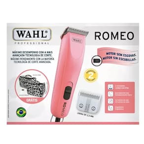 Máquina de tosa romeo com uma lâmina já instalada Descrição Romeo é o equipamento ideal para uso como máquina principal do banho & tosa. É uma máquina de tosa potente e versátil, fabricada no Brasil e com ótimo custo benefício. Ela possui um motor sem escovas, de alta tecnologia, que é silencioso, potente e de longa durabilidade, proporcionando mais conforto para o trabalho do tosador e para o PET.