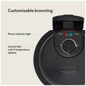 Máquina de Waffle Belga BELLA, faz até 4 waffles em 10 minutos, sistema de aquecimento de 1000W, controle de escurecimento, placas antiaderentes, bandeja removível e lavável.Porta-fio