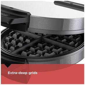 Waffles de estilo belga de 18cm. Crie waffles redondos de estilo belga de 18cm clássicos, o tamanho perfeito para uma porção Pratos antiaderentes Os waffles deslizam facilmente graças às placas antiaderentes, que são simples de limpar Cabo Cool Touch O estendido alça permite que você abra com segurança a máquina de waffles enquanto está quente Luz indicadora de pronto Mostra quando a máquina de waffles está pré aquecida e pronta para cozinhar zenamento vertical O design que economiza espaço permite o zenamento vertical no gabinete. O café da manhã é melhor com esta máquina de waffles de aço inoxidável de estilo belga. As grelhas antiaderentes extra profundas fazem waffles grossos e fofos com bastante espaço para todas as suas coberturas favoritas. Além disso, os pratos antiaderentes são fáceis de limpar e são perfeitos para fazer uma variedade de alimentos experimente batatas fritas, sanduíches grelhados, brownies, rolos de canela e muito mais O versátil BLACK DECKER Belgian Waffle Maker permite criar novas guloseimas e descobrir favoritos clássicos Marca: Não Informado